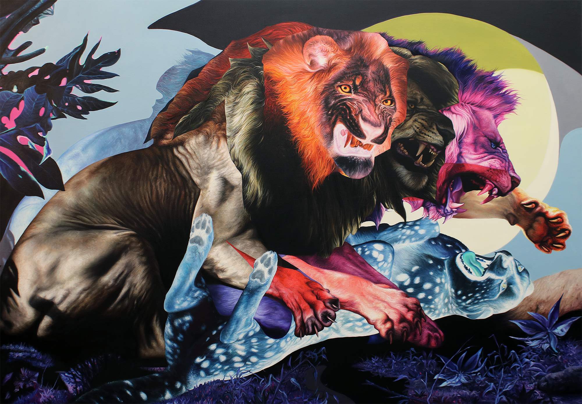 We first came across Gram and her surreal distorted imagery at the renowned art academy New York Academy of Art in the fall of 2016. Since then we have had the immense pleasure of kicking the door in and insisting that the world take a closer look at Angela Gram’s aesthetically scattered brutes and critters, exposing nature’s savagery in an unravelling Western context.