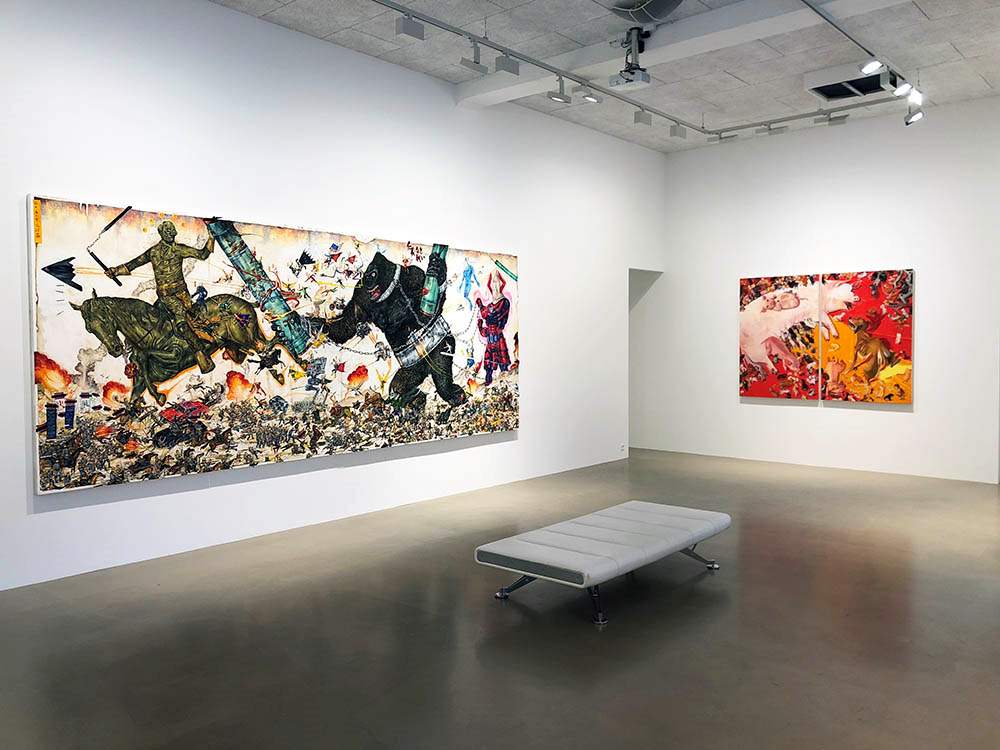 We are currently showing Mu Pan’s massive retrospective solo show "Battles Without Honor and Humanity", which has completely transformed the gallery into a gory battlefield of bloodshed between historical militants and animated commanders. Even the heroes have been equipped with Ku Klux Klan hoods, underlining the fact that there are no good guys here!