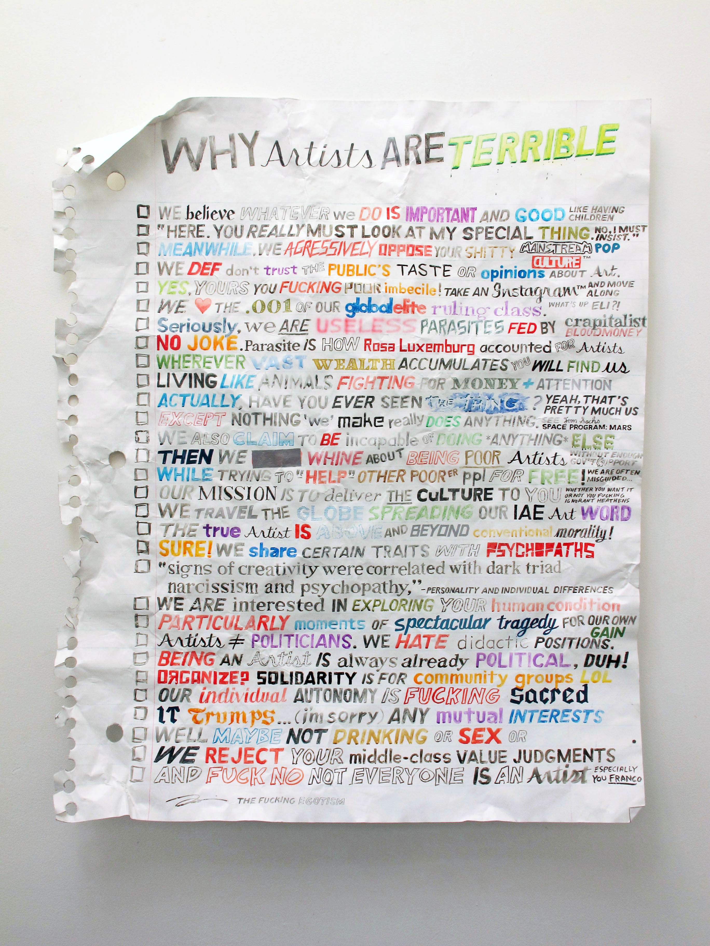Poulsen’s Fifteen consist of: Aaron Johnson (US), Abigail Schmidt (US), Christian Rex van Minnen (US), Eric White (US), Jacob Dahlstrup (DK), Jean-Pierre Roy (US), John Jacobsmeyer (US), Margaret Bowland (US), Mi Ju (KOR), Mu Pan (US), Nicola Verlato (IT), Stephen Vollo (US), Stig Stasig (DK), Tom Sanford (US) and William Powhida (US)
