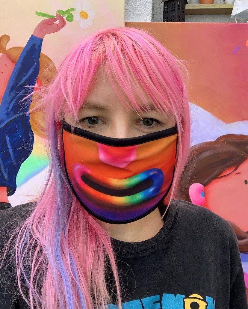 Super Future Kid has collaborated with Migrate Art on their Masks for Meals campaigns to raise money for feeding people in need during the pandemic. She created a limited edition face mask and all proceeds from the sale go to fund their project.