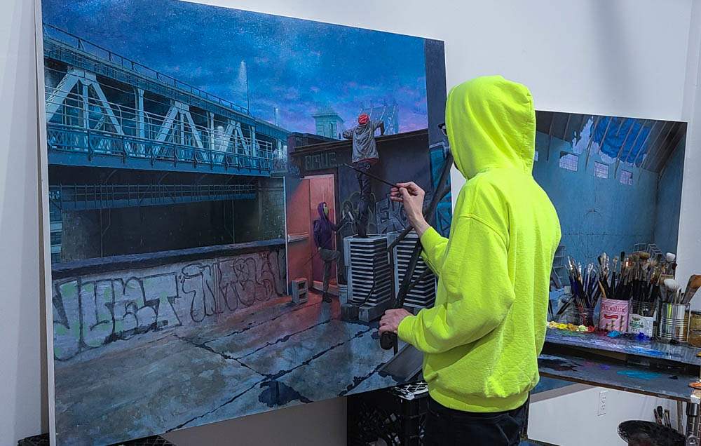 Taylor Schultek working on new paintings for our Inhouse Art Herning 2021 that will show digital as well as in our gallery from May 29th.