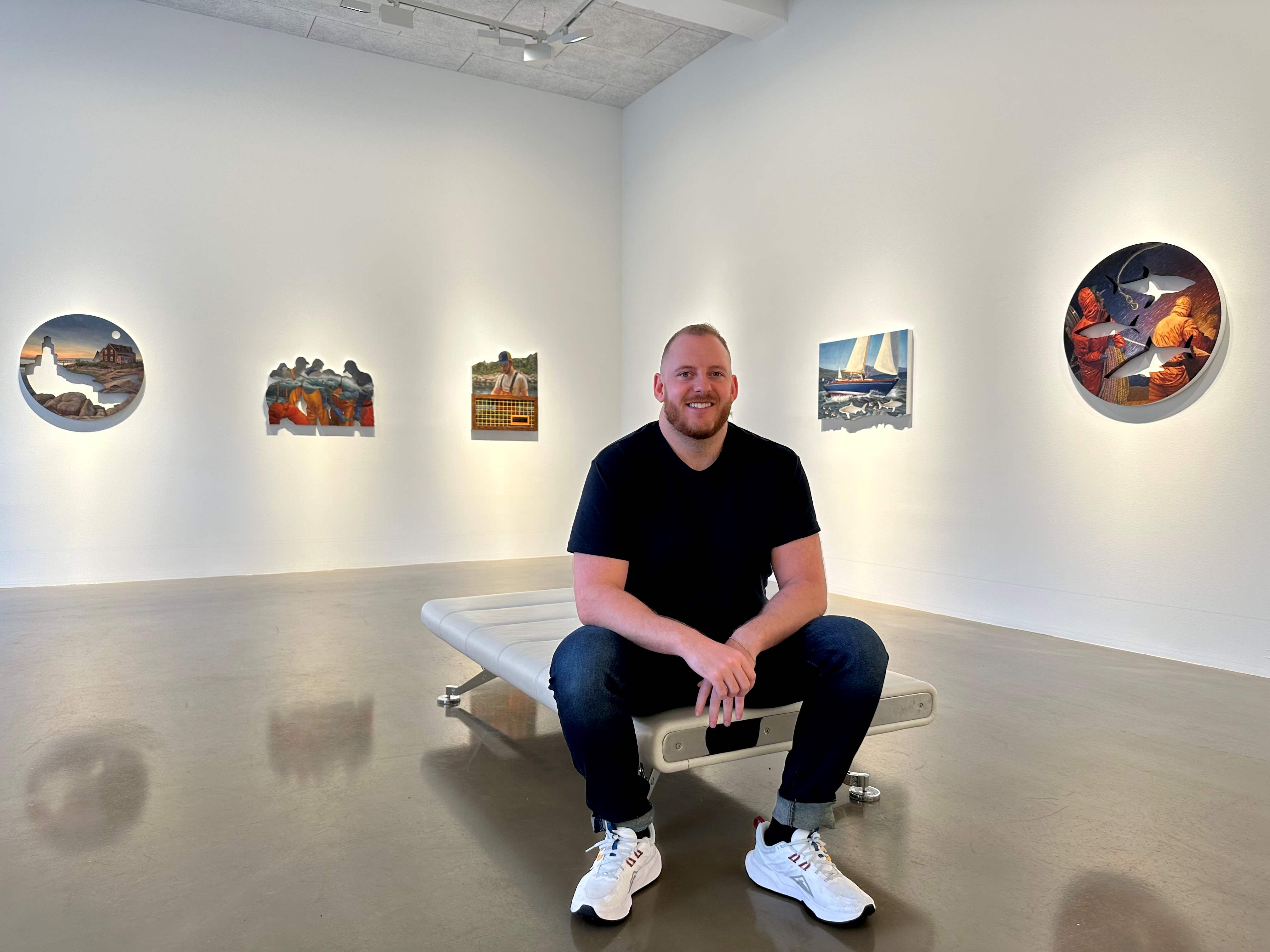 This April we saw the face of another young New York Academy of Art graduate at Gallery Poulsen, with Ryan Davis’ debut solo exhibition Holy Mackerel!. Inviting us to experience a journey on the turbulent and tempestuous seas of New England, Massachusetts, Davis’ opened our eyes through a series of emotive and palpable works to the significant strength, power, beauty and force of the North Atlantic waters by his hometown. Moving away from the rectangular format of many canvases, Davis’ specially cut-out works on shaped canvas, offer a fresh take on many traditional seascapes and nautical scenes – securing him and his works an honorable feature in the Gloucester Daily Times!
