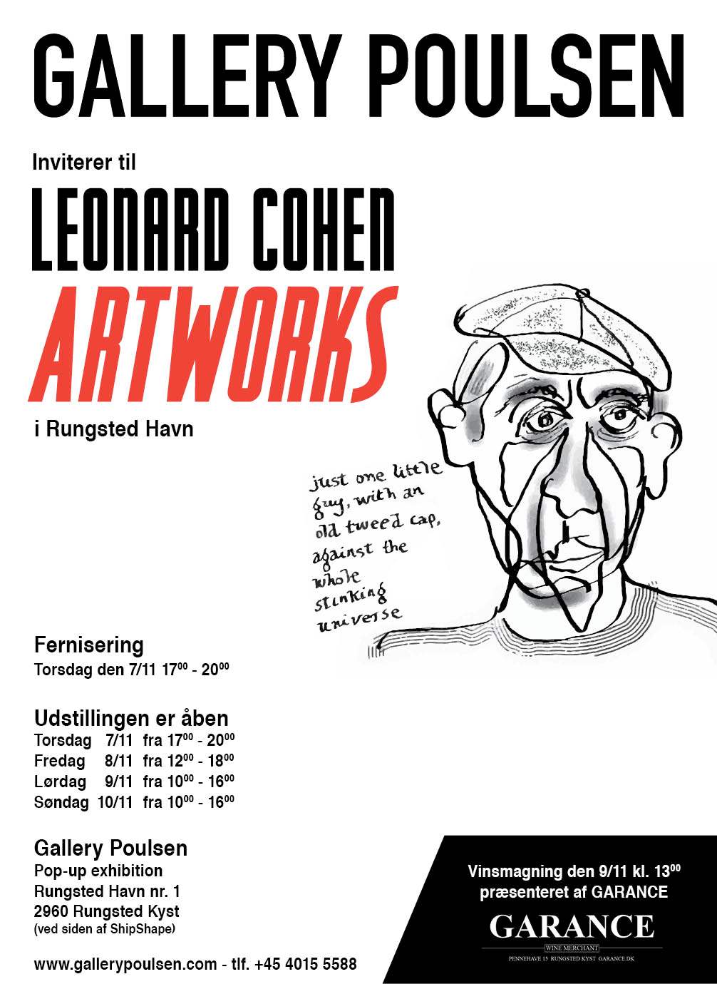 Rungsted Havn får en verdensberømthed på besøg når den lokale Rungsted borger og gallerist Morten Poulsen inviterer til en eksklusiv visning af sangeren Leonard Cohens kunst. Visningen er for at markere Gallery Poulsens 10 års jubilæum.