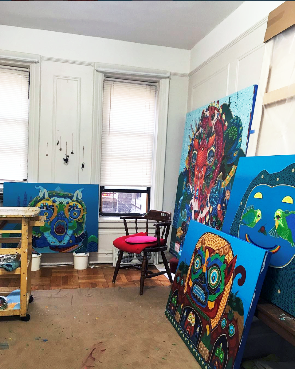 When I lived in Korea I wasn’t so conscious of my Korean heritage and the Korean folk art influence on my work. People are less different from me there and everything is familiar. Living away from Korea, I’ve become more aware of my surroundings and I have thought more about my national and cultural identity. I have lived in the US almost 11 years now. American culture has heavily influenced my life. I now employ some western painting techniques (rendering, soaking, and dripping). If I didn’t live abroad I would not have arrived at my current aesthetic.