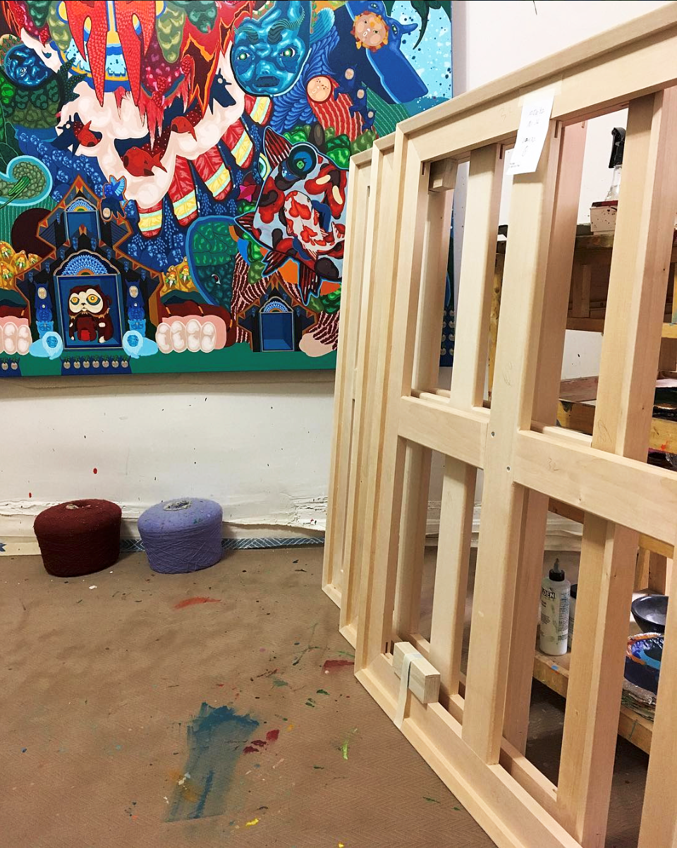 Exploring images through memory, I collect fragmented pieces of the universe in and around us. Compositions often appear as totemic landscapes- a mix of chaos and ordered hierarchy. Sometimes what I remember is not what I saw. The lines keep mutating. Forms become illusory and repetitive. Intense colors and intricate patterns randomly come and go.
